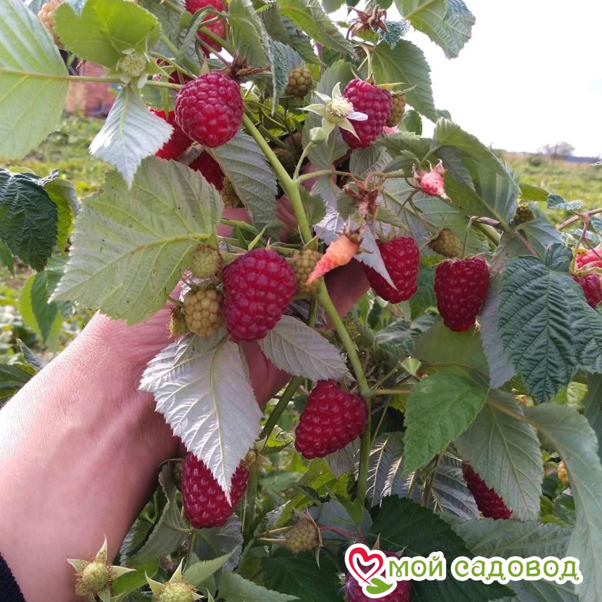 Читать далееМалина относится к ремонтантным сортам и плодоносит 2 раза за сезон. Куст у культуры высокий, крепкий и мощный, лоза в длину достигает до 1,6-1,8 м. Боковые побеги кустов в среднем по 70 см. Примечательно то, что ветки могут ломаться под тяжестью ягод, поэтому необходимо продумывать систему держателей или шпалер.